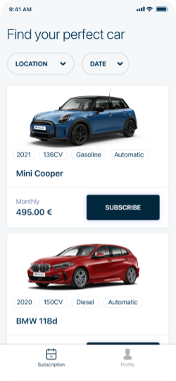Nuestra solución permite a los concesionarios integrados en Mondocar rentabilizar sus vehículos inmovilizados a través de suscripciones, así como gestionar su flota desde nuestro Backoffice, clientes, pagos y reservas. Los usuarios pueden suscribirse en menos de 2 minutos a través de la aplicación o la web sin fricciones de documentación.