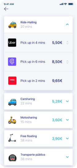 The user can easily locate, compare and book all mobility services near their location in real time. The user won’t ever need to open each and every single mobility app.
